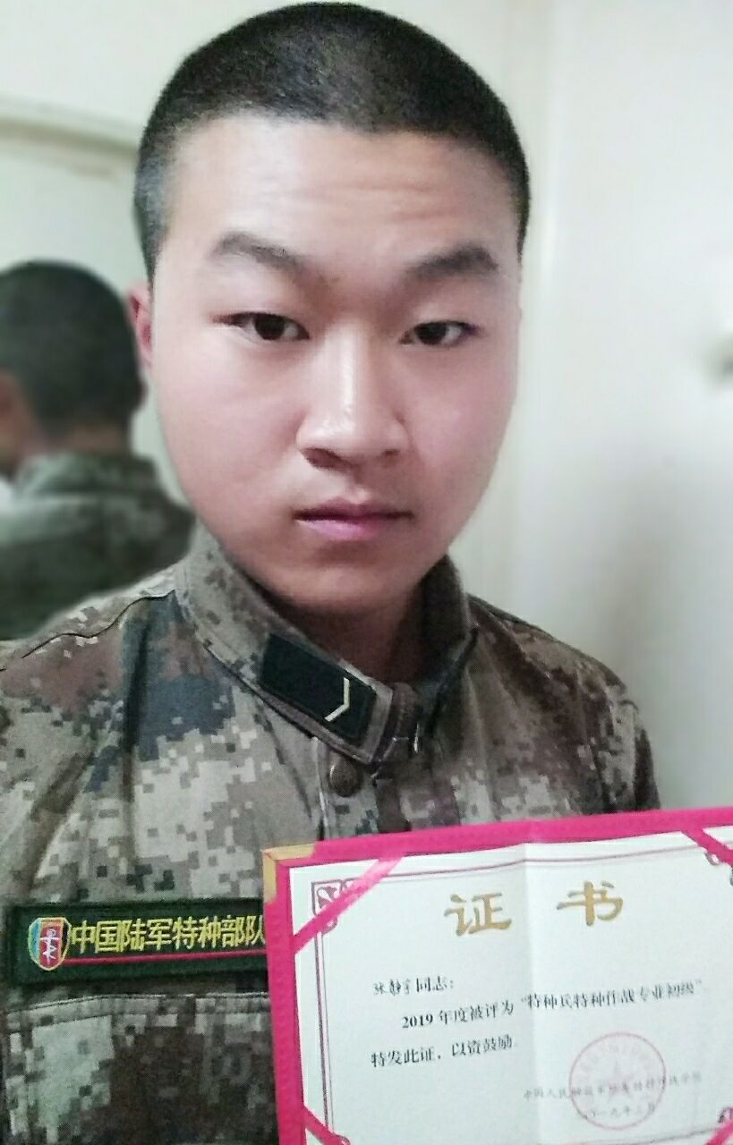 17应化班学生、我院导航员的优秀代表张静宇同学,2018年9月参军,入选陆军某部特种兵,3月底,顺利通过考核,获得“特种兵特种作战专业初级”证书!