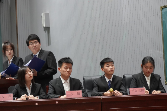 双方在自由辩论环节打的难解难分,就在僵持之下,我方二辩选手以冷静沉着的心态和灵巧的角度建立起新的问题,将对方打措手不及,于是环环相扣我方一举拿下战场主权。