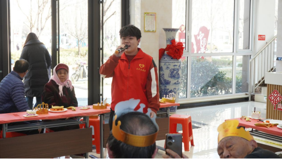 启动仪式后,社区内热闹非凡。公益市集人来人往,室内老人生日会温馨满满。学院多才多艺的学生登上舞台,深情献唱。悠扬的歌声在现场回荡,唱到高潮处,老人们脸上洋溢着幸福的笑容,不自觉地跟着节奏拍手。这歌声不仅传递出美妙的旋律,更饱含着对老人们的真挚祝福,让他们感受到社会的关爱与温暖。