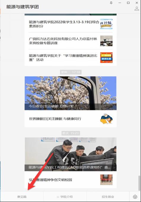 为了学生更加方便、有效地将自己在学习、生活中的意见向学院反映,更是希望通过意见箱的反馈,使学生能够有一个更加舒适、满意的学习和生活环境,最终达到促进学院知晓学生需求并及时处理,整个学院更加团结统一的目的,推出公众号意见箱功能。