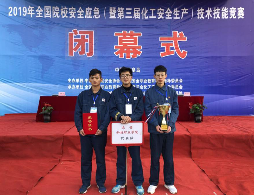 2019年11月5日-11月6日,全国职业院校安全应急暨第三届化工安全生产技术技能竞赛在秦皇岛博赫科技园举办。本次竞赛由中国化学品安全协会、全国安全职业教育教学指导委员会主办。竞赛项目分为典型化工生产事故应急处理仿真操作项目、多种危化品生产工艺安全操作、危化品安全生产作业检修操作三个项目,共有27所高职院校参赛。我院王晓霞、李朝辉老师指导的学生任继发、孙道龙、李广志荣获团体三等奖。