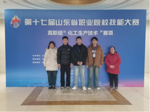 12 月 15 日,第十七届山东省职业院校技能大赛(高职组)“化工生产技术” 赛项于东营职业学院圆满落幕。本次大赛吸引了来自全省各地市的 18 支代表队参与角逐,竞争激烈。我院吴莉芳、汪媛媛老师指导的学生高允卓、何世臣、周有祥组成的团队表现出色,荣获省三等奖,在众多参赛队伍中位列第 8 名。