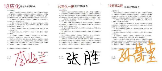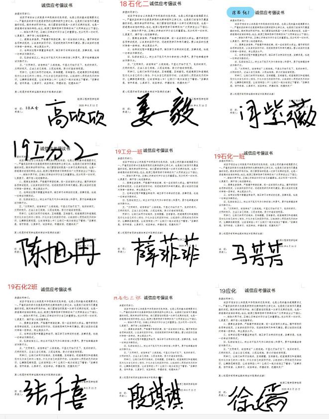 期末考试即将来临之际,能源工程学院严抓考试氛围,学生积极响应,在家送来一份沉甸甸的诚信应考承诺书,点赞!