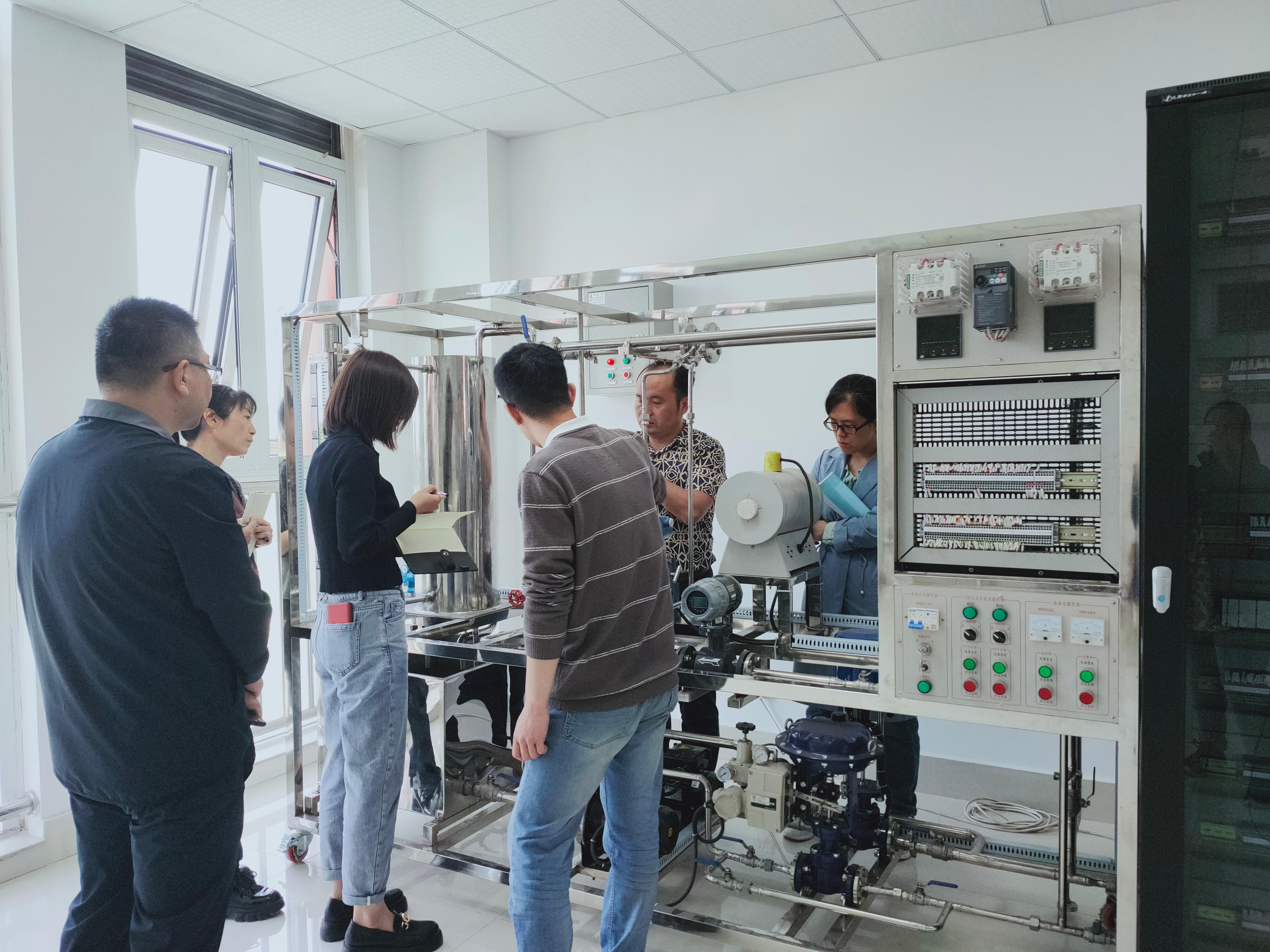 杭州言实科技技术工程师陈用明给老师们介绍了装置上的设备和仪表,介绍了可以开设的项目。实训室有2套自动化仪表综合实训装置、2套压力表校验系统、2套气动薄膜控制阀与电气阀门定位器和2套自动化仪表DCS控制系统及机柜装置。化工仪表实训项目主要是锻炼学生流程图识读、现场接线、自动化仪表校验以及自动化装置操作能力,理论联系实际,提高学生仪表自动化操作技能水平。