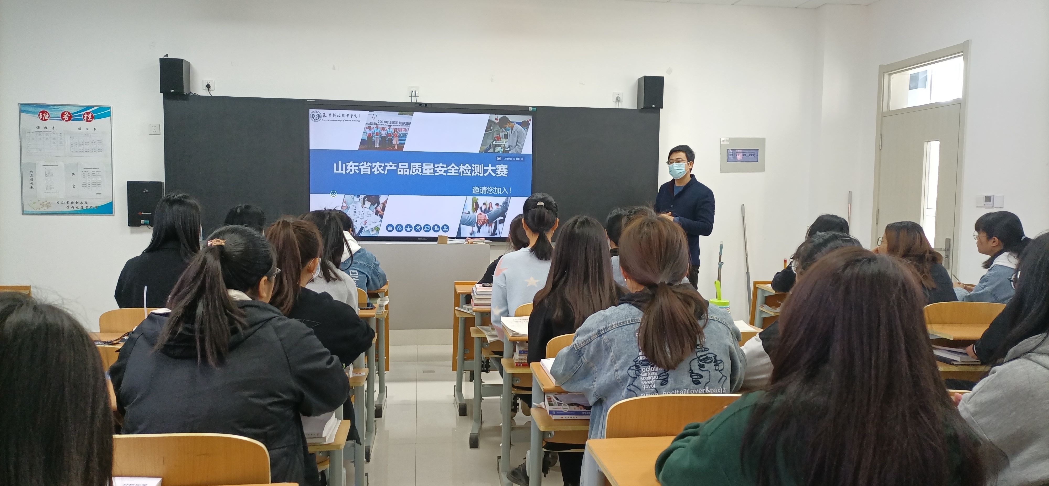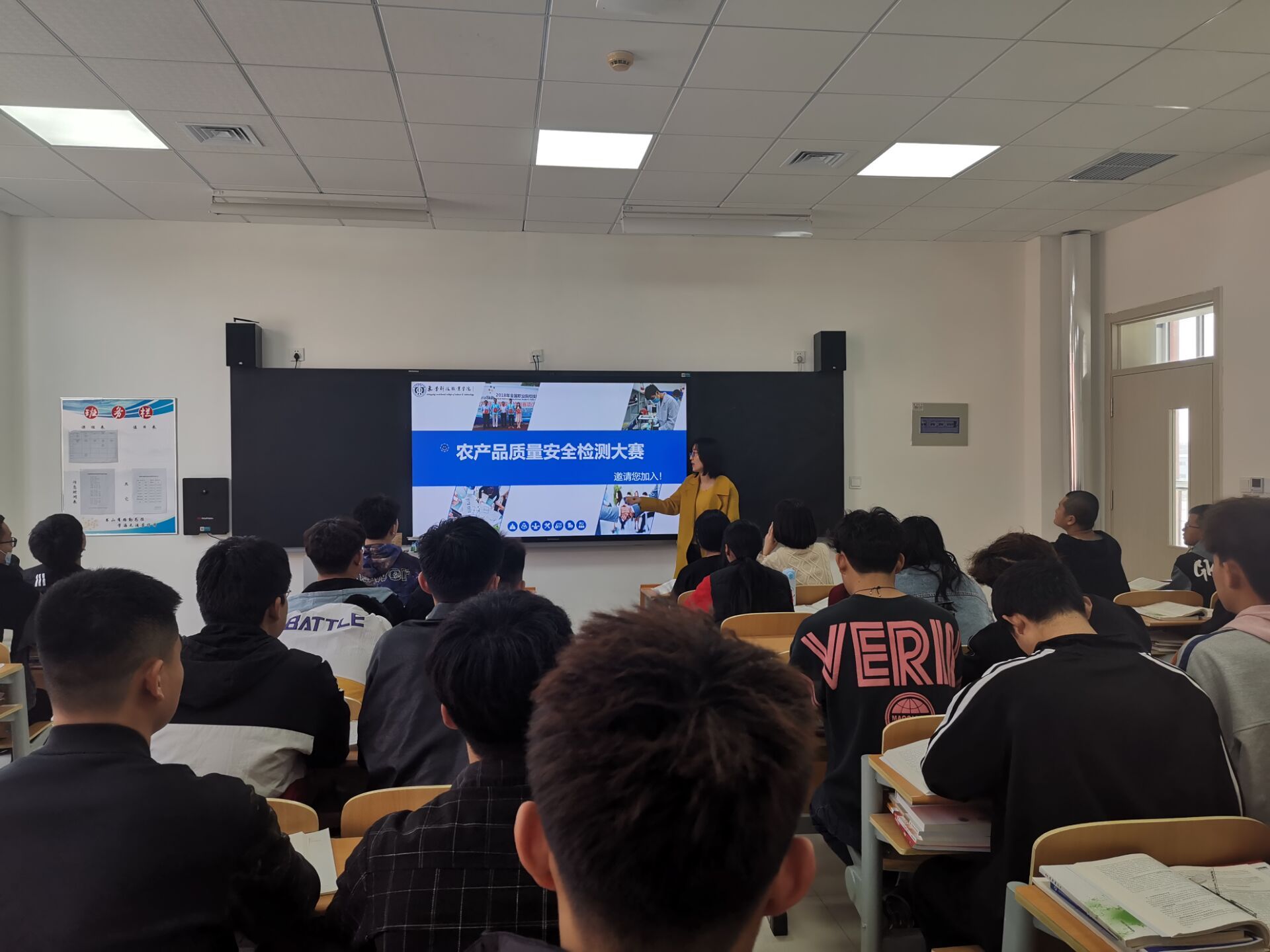 2021年4月6日,为积极备赛2021年度山东省高职院校技能大赛。农产品质量安全检测赛项第一次理论培训在我院4-304教室正式开班,来自食品检验检测技术、石油化工、工业分析、应用化工四个专业共33名同学参加了此次培训。后期指导老师将根据比赛赛程优化培训模式和考核方式,为甄选技能大赛优秀选手打好基础。