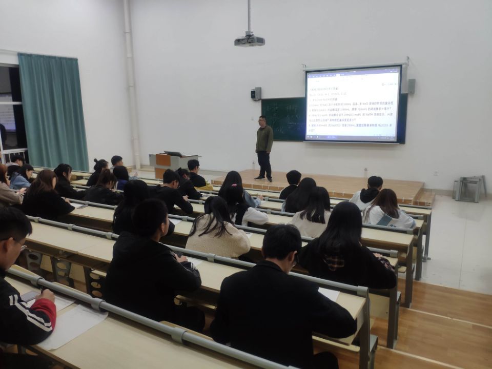 4月8日晚,在前期培训的基础上,再次组织学生在4-303举行“化学实验技术”技能大赛选拔考试。考试内容为前期的培训内容,试卷一共包括五道题目,以分析计算为主。参加培训的37名同学全部参与了考试。