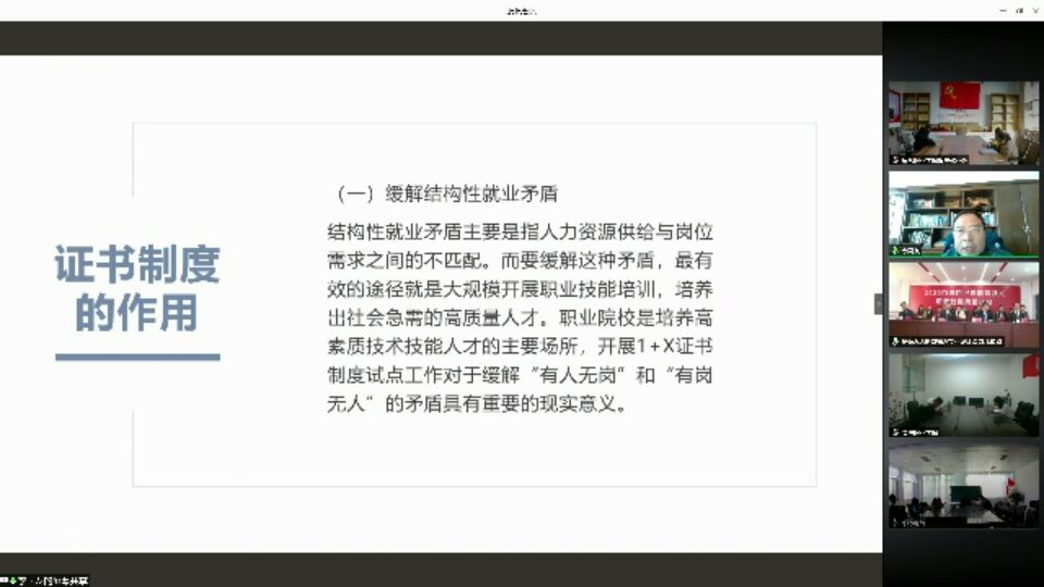为持续推进“1+X”制度,加快专业团队建设,11月3号,学院安排付志金和王晓霞两位老师参加了1+X线上培训,对1+X证书的开展进行了系统学习。