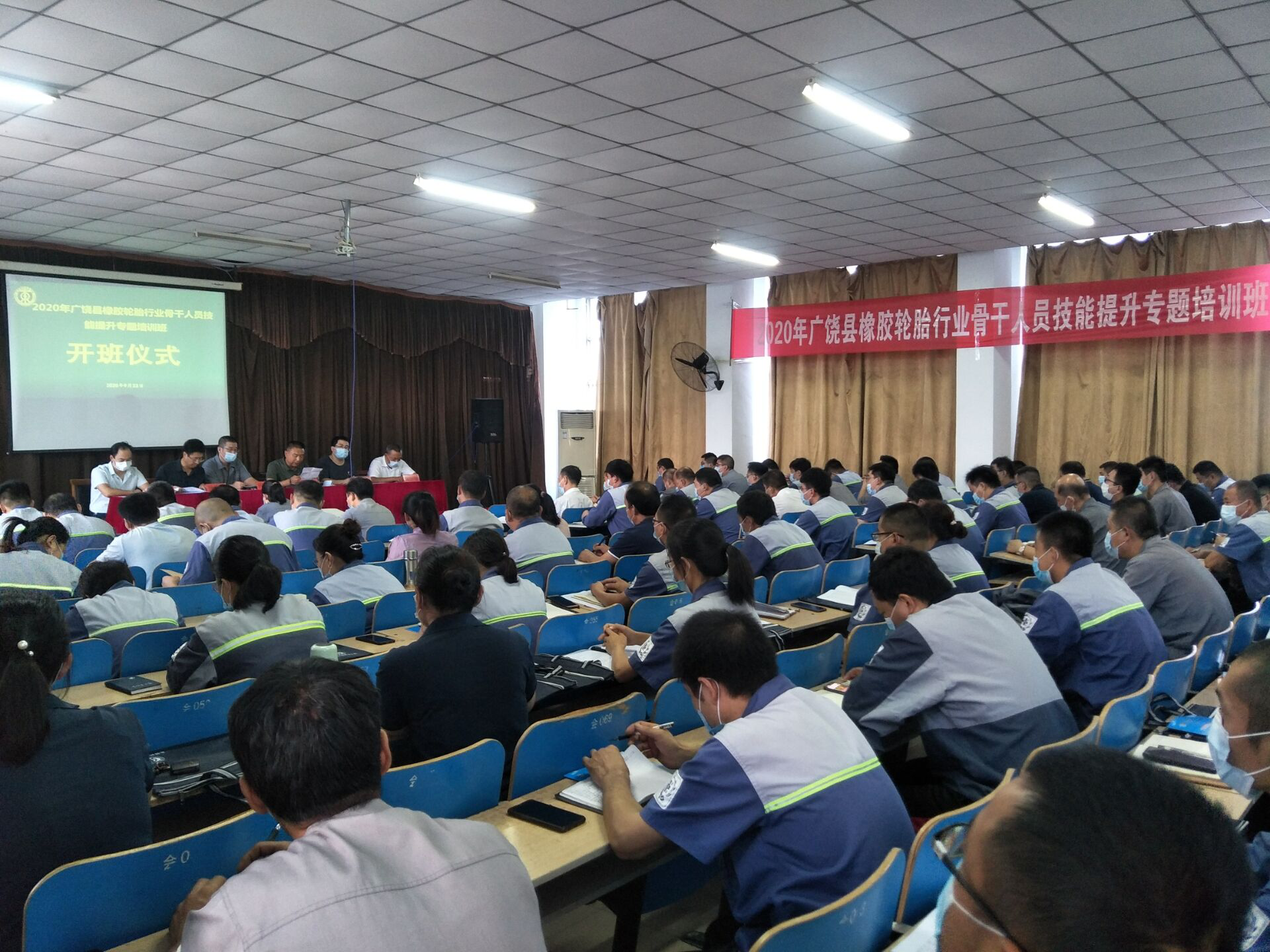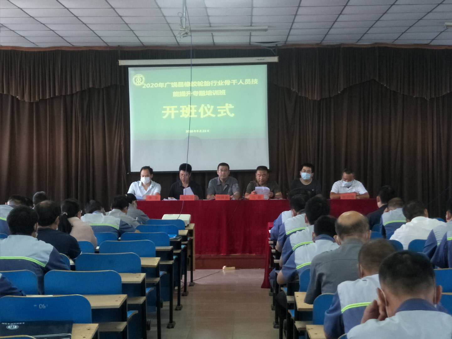 9月23日上午,2020年广饶县橡胶轮胎行业骨干人员技能提升专题培训班开班仪式在永隆橡胶有限公司会议室隆重举行。县公共就业和人才服务中心副主任马新,我校副校长徐兴习,能源工程学院院长贺海明,继续教育学院院长李平,永盛集团总工程师何井武、永隆橡胶公司总经理张沂强出席本次开班典礼。