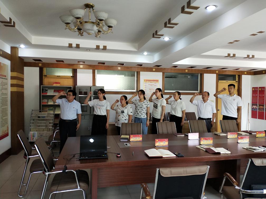 牢记入党初心,永葆党员本色。全体党员在党支部书记的领誓下,面向鲜艳的党旗,胸前佩戴党徽,郑重的举起右手,以铿锵有力的誓言,表达不忘初心、砥砺传承的坚定决心。宣誓后,全体党员集中缴纳了7月份党费。