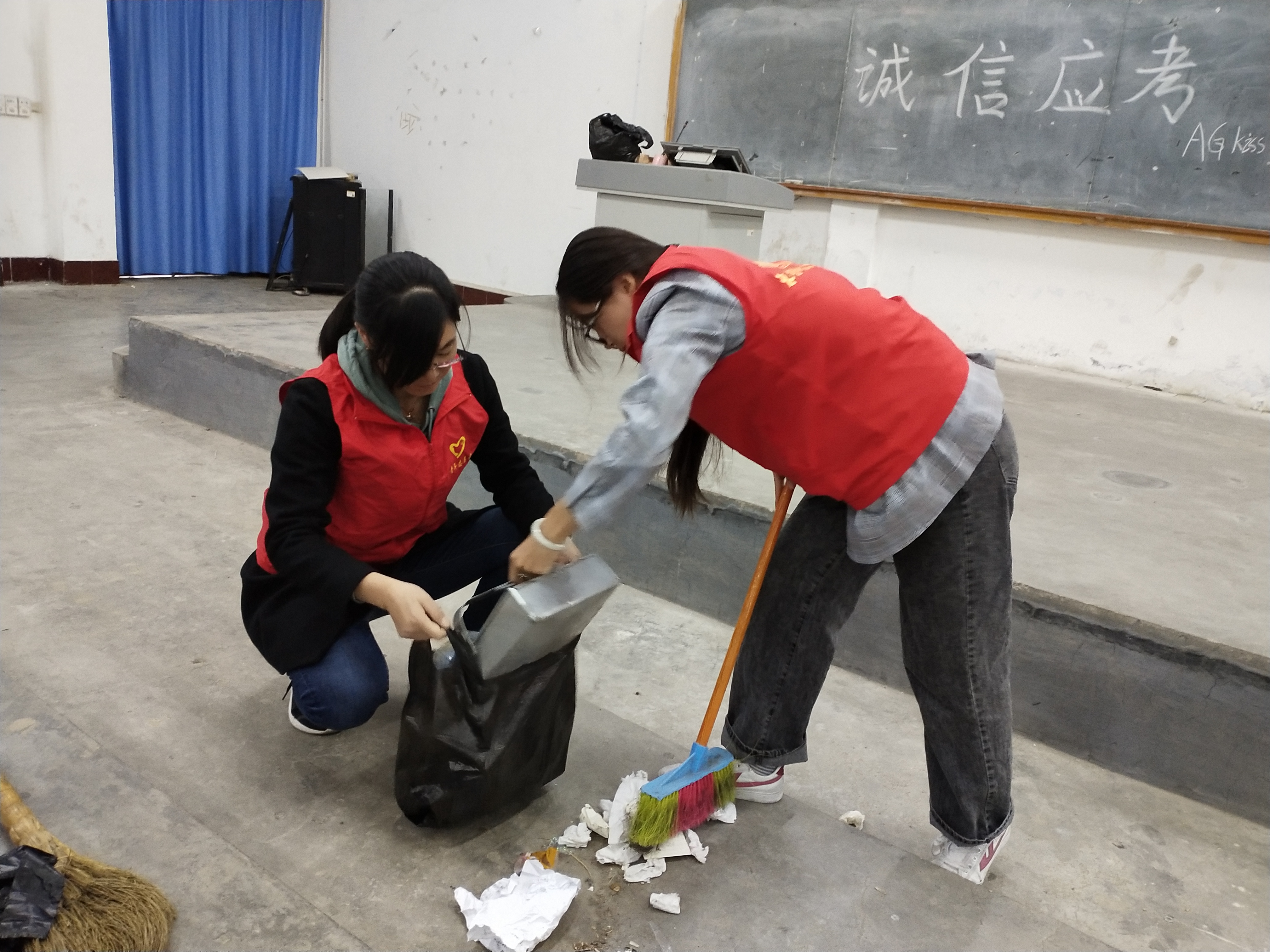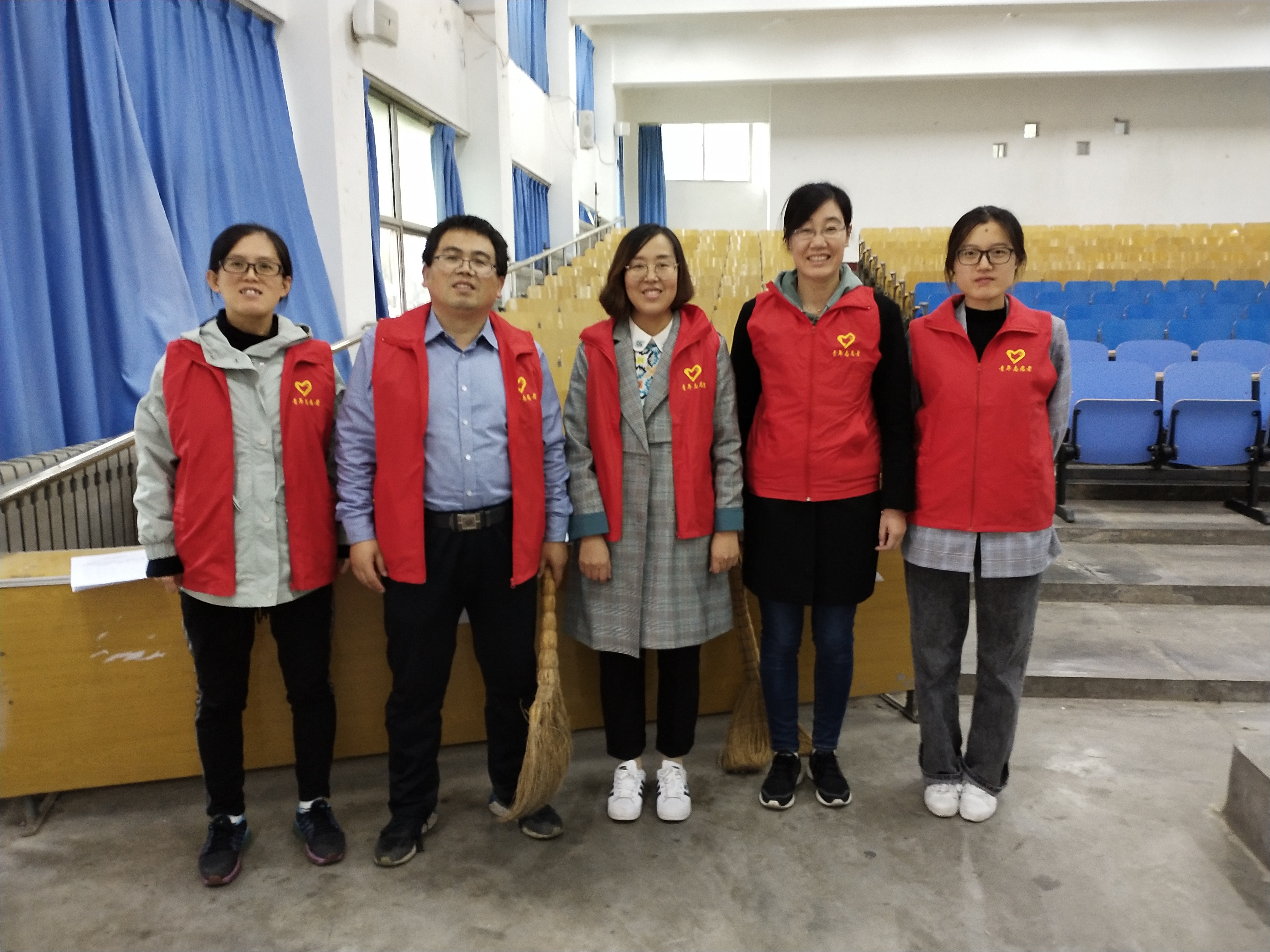 当天下午16点,在支部书记贺海明同志的带领下,全体党员来到学校报告厅参加志愿活动。活动中,大家不怕苦,不怕累,扫地、拖地、擦桌子、擦黑板、倒垃圾。通过大家2个小时的辛苦劳动,学校第二报告厅和第三报告厅卫生有了很大改观。