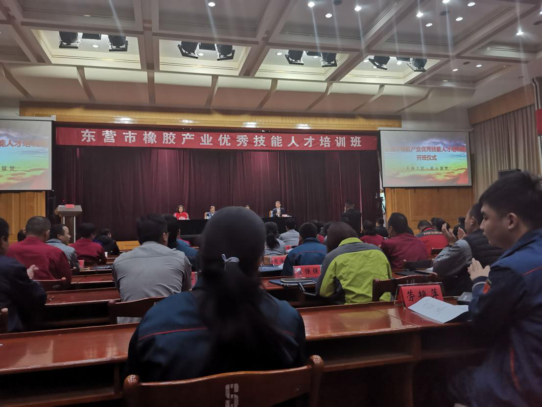 2019年11月8日,东营市橡胶产业优秀技能人才培训班在万达控股集团有限公司开班。市公共就业和人才服务中心副主任辛雁冰讲话,万达控股集团有限公司副总裁寇如强主持,垦利区公共就业和人才服务中心主任张延荣,市技师学院培训处处长高思文参加开班仪式。我校能源工程学院派专职教师前去学习,提升专业技能,了解橡胶行业新动态。本次培训来自全市橡胶行业企业的98名技能骨干人才进行了为期5天的学习。