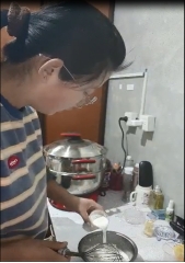 甄选对烘焙感兴趣,有天赋又具有责任心的同学是关键中的关键。正值寒假期间,甄选任务困难重重,有幸在20食检尤志云班长的招募下,王俏、王月、杜丽敏同学积极参与进来,正式组建了社团骨干人员小团体。4名同学兴趣满满,大家经常熬夜讨论甄选方案,在大家的努力下,一起讨论制定了3次技能+1次理论的甄选方案。2021年2月正式开展烘焙报名工作, 35名同学报名参与了后面的考核活动,利用假期家里有限设备条件先后进行了电饭煲蛋糕、雪媚娘的制作。大家兴趣盎然在家制作小糕点,丰富了假期生活。开学后又经历2轮筛选,最终20食检班的李梦璐、于子茹两位同学摘得桂冠,并获得了外派学习烘焙技能的资格。