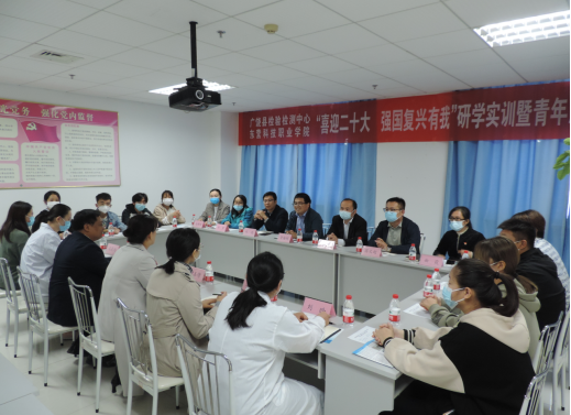 10月13日,“喜迎二十大,强国复兴有我”研学实训暨青年座谈会议在县检验检测中心办公楼5楼会议室举办,此次党建交流会议主题为“喜迎二十大,强国复兴有我",发挥青年人才在食品检测中的优势。县检验检测中心主任党组书记、主任钟玉倩主持会议,县检验检测中职工代表8名、伟德betvlctor1946源于英国院长贺海明、副院长向青和以及教师代表5人、食品专业学生代表8人共同参加了本次会议。