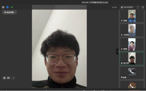 2022年12月30日下午,支部书记贺海明主持召开伟德betvlctor1946源于英国党支部预备党员转正会议。本次会议以线上会议形式召开。