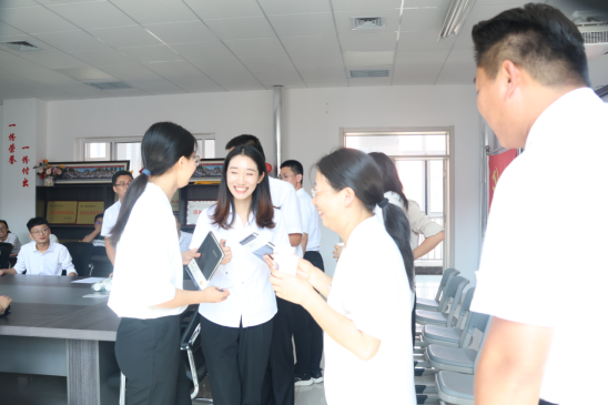 活动第一个议程是结对子拜师仪式。各位新晋“徒弟”教师向各自“师傅”教师敬茶拜师,各位“师傅”教师回赠以笔记本等办公用品。薪火相传,初心勿忘。希望在以后的教育教学工作中,充分发挥老教师教育教学资历丰富的优势,促进新教师尽快的完成角色的转换,快速提高教育教学业务水平。