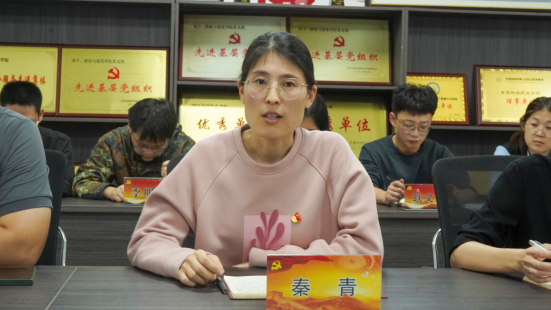 最后,进行党建引领青年教师能力提升分享会。学院青年教师教学竞赛预选赛圆满落下帷幕,最终推选出三名教师。在党建引领下,党员教师秦青、延萌萌同志脱颖而出,在赛中彰显出党员带头的模范先锋作用,两位同志分别做分享发言。