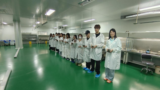 在企业总经理郭子薇的引领下,师生团队深入探访十万级洁净组培室、智能培育温室及职场化生活区。组培室内,自动化培养基灌装设备与层流操作台的精密运作,展现了现代农业的技术精度;培育温室中,蝴蝶兰"克隆苗"从细胞培育到规模化生产的全流程展示,让学生直观感知农业工业化转型的实践路径。而企业标准化宿舍管理与"师徒结对"生活指导机制,更从细节处助力学生完成从校园到职场的环境适应。