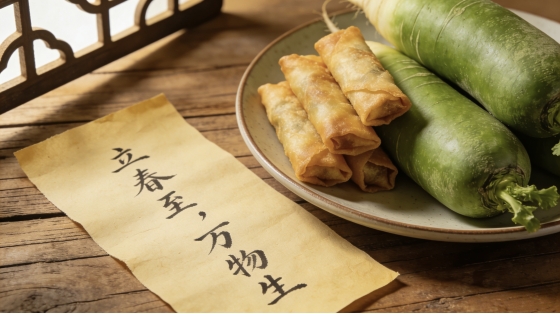 立春的烟火气,更藏在代代相传的习俗里。民间素有“咬春”之俗,一盘脆嫩的青萝卜,一卷裹着鲜蔬的春卷,都是代表春的味道,咬下一口春味,既去除了冬日浊气,也接纳了对新生的期许,简单的仪式里,满是中国人对新岁的温柔期盼。这些细碎的习俗,像春风里的微光,让节气的更迭,多了几分人间烟火的温暖。