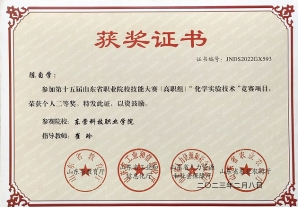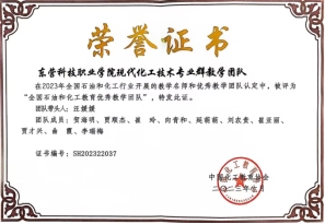 聚力化工专业建设打造专业核心品牌,2015年石油化工技术专业被评为“全国石油和化工行业优秀教学团队”;2018年现代化工技术专业群立项为山东省品牌专业群;2021年石油化工技术专业开展山东省中外合作办学项目;2022年入选山东省高水平专业群;荣获山东省职业教育教学创新团队、东营市职业教育教学创新团队,全国化工行业优秀教学团队等荣誉。”